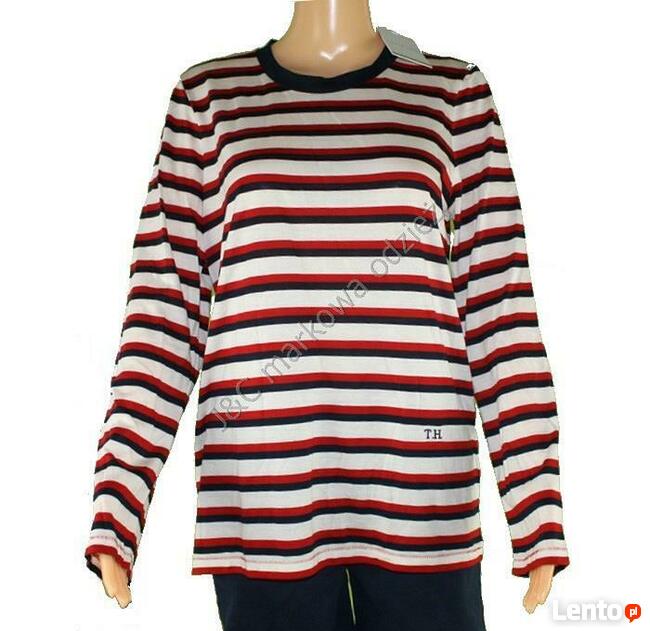 Nowa oryginalna damska bluzka Tommy Hilfiger - Essential Bold ST - WW0WW25565-0E4 - czerwono-czarne paski - śliczna, bardzo ...