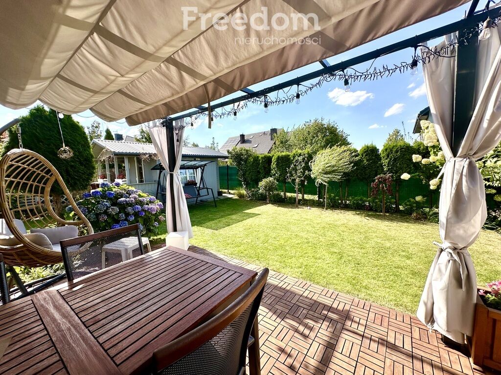 zabudowany taras, drewutnia, pergola i domek narzędziowy. W domu