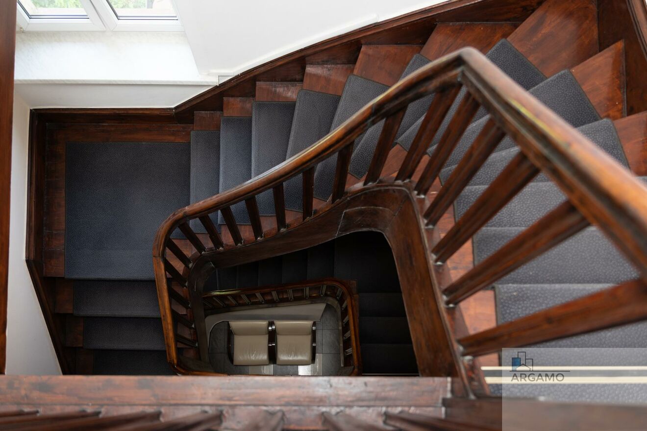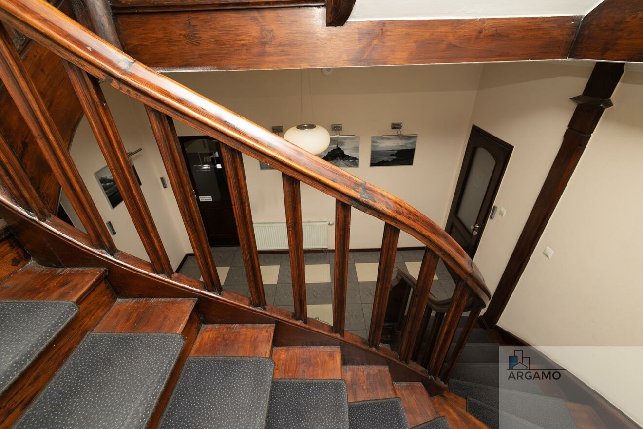 powierzchnia użytkowa: 330 m solidna, murowana konstrukcja, ogrzewanie gazowe + nowoczesna klimatyzacja, zachowana oryginalna wewnętrzna drewniana klatka schodowa, wysokie pomieszczenia, duże okna, reprezentacyjny układ wnętrza bardzo dobry stan techniczny(łącznie 10 pomieszczeń na trzech kondygnacjach, dodatkowo dwie łazienki oraz pięć pomieszczeń w piwnicy w tym kuchnia),