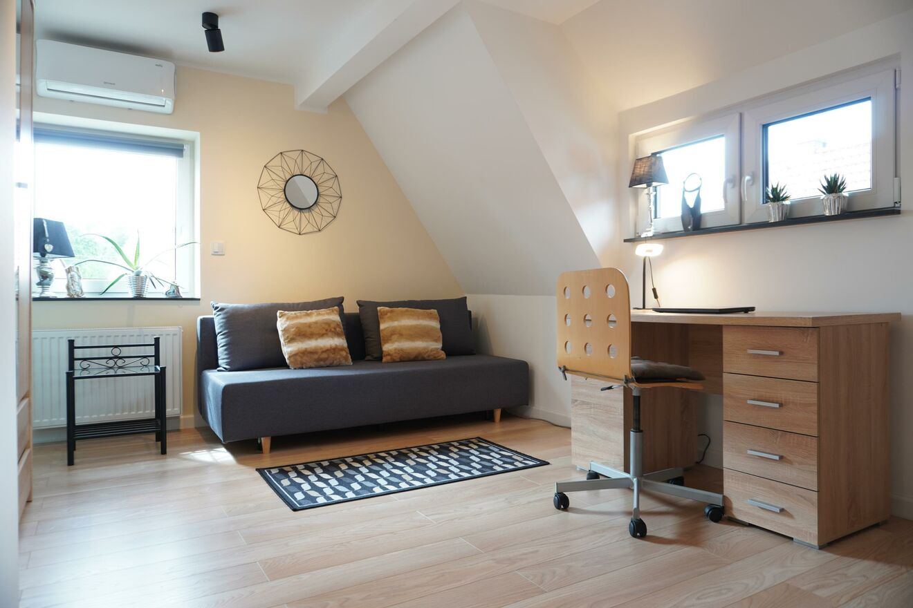 Z przyjemnością prezentujemy Państwu nowoczesną nieruchomość w zabudowie bliźniaczej o łącznej powierzchni około 80m, przeznaczoną na wynajem. Budynek został wyposażony w ogrzewanie gazowe oraz klimatyzację, zapewniającą komfort również w najcieplejsze dni. Wnętrze domu zostało zaprojektowane z myślą o wygodzie i funkcjonalności. Centralnym punktem jest przestronny salon z dużymi przeszkleniami, które doskonale doświetlają pomieszczenie naturalnym światłem. Następnie znajduje się w pełni wyposażona kuchnia z wydzieloną częścią jadalnianą, tworząca idealne miejsce do codziennego życia i spotkań. Nieruchomość oferuje także niezależny pokój, gwarantujący prywatność domownikom. Ustawna łazienka zapewnia miejsce na praktyczną zabudowę szafki i półki na ręczniki, kosmetyki oraz inne niezbędne akcesoria. Dodatkowym atutem jest kolejny, przestronny pokój o interesującym charakterze architektonicznym. Niewątpliwym wyróżnikiem tej oferty są dwa tarasy, które dają szerokie możliwości aranżacyjne i pozwalają w pełni korzystać z przestrzeni na świeżym powietrzu. Nieruchomość stanowi idealną propozycję dla osób ceniących ciszę i spokój. Położona z dala od głównej drogi, zapewnia ograniczony hałas i niewielki ruch samochodowy. Dodatkowym udogodnieniem są dostępne w pobliżu miejsca parkingowe.Nieruchomość składa się z: