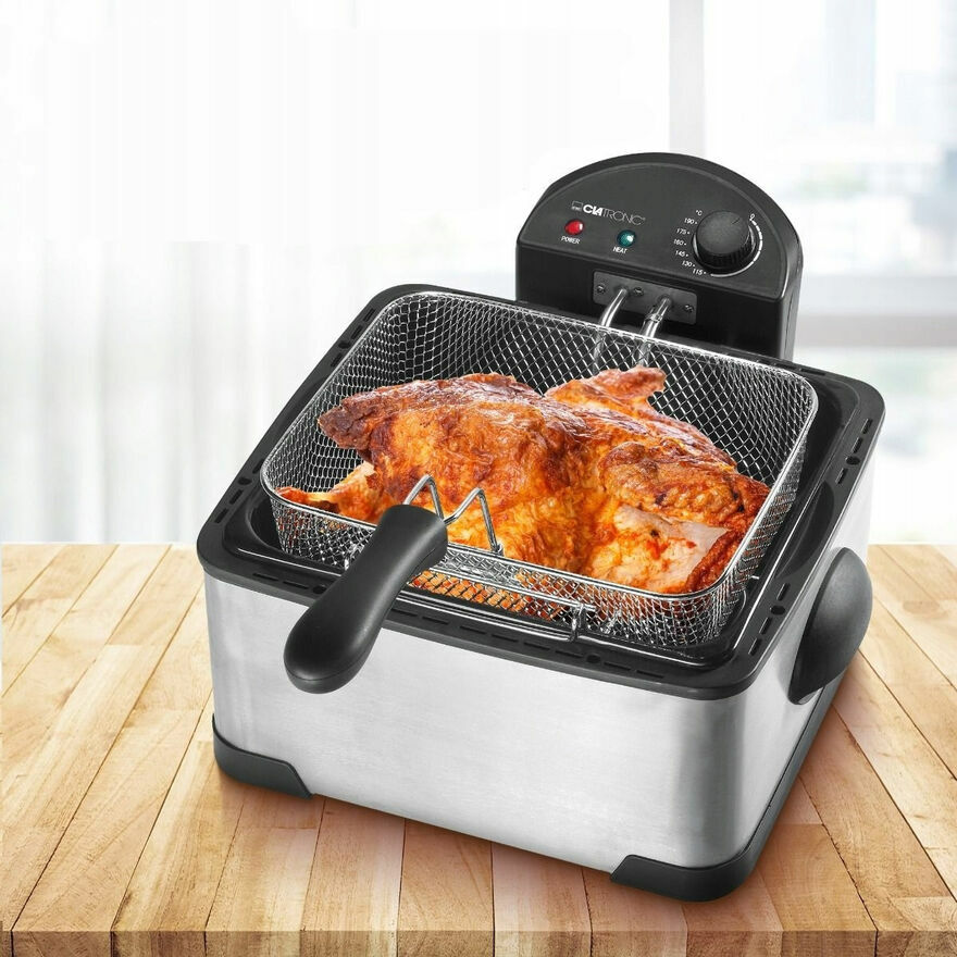Frytkownica olejowa 4-litrowa Clatronic FR 3195Clatronic FR 3195 to idealne urządzenie do przygotowywania smażonych dań z ziemniaków i mięs. Frytkownica umożliwia szybkie usmażenie idealnie chrupkich i miękkich w środku frytek. Dzięki FR 3195 usmażymy również mięso, grzyby oraz warzywa. Dzięki wysokiej mocy smażenie jest niezwykle efektywne.
