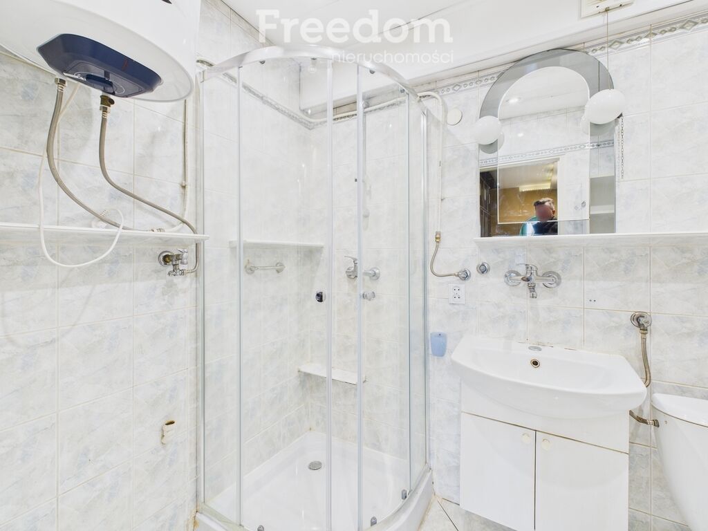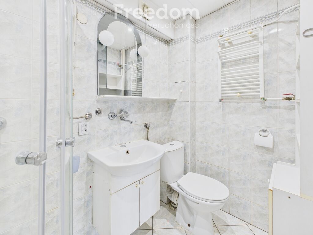 Łazienka z WC: w pełni wykafelkowana, wyposażona w kabinę