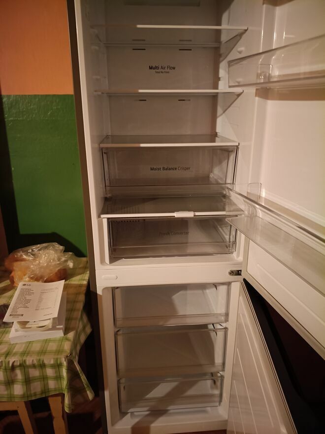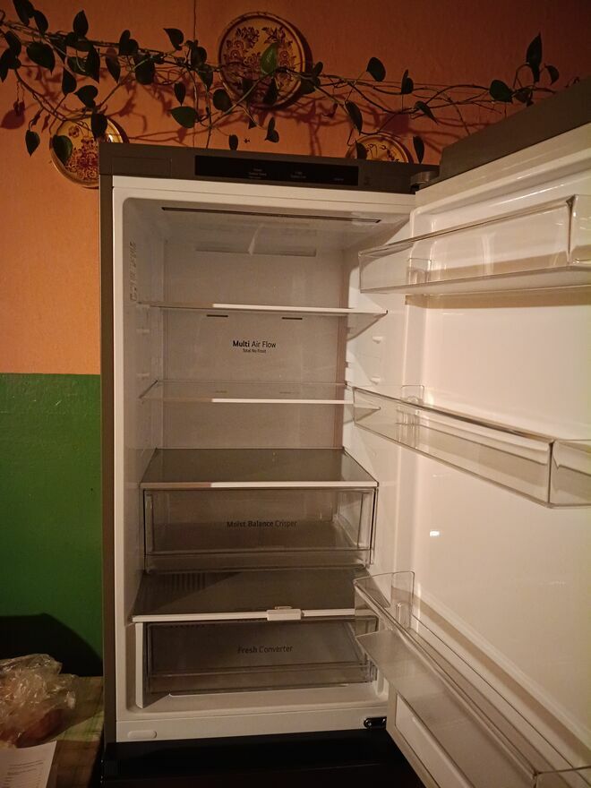 Sprzedam lodówkę nową marki LG srebrna wys. 180cm NoFrost 1.600 zł transport w swoim zakresie odbiór kontakt email lub tel.Maria
