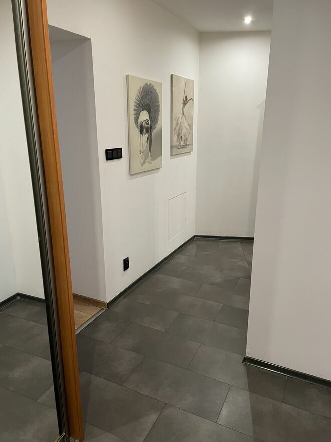 Duży przedpokój oraz łazienka z wanną wraz z WC. Kuchnia niewielka, ale oddzielna.