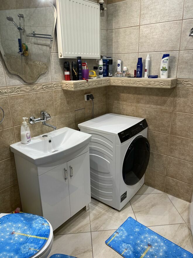 Centralne ogrzewanie jest miejskie, a ciepła woda z piecyka gazowego typu Junkers.