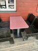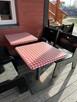 Stolik zewnętrzny 120 x 70 cm wys. 74 cm - stan dobry - obity ceratą - dostępne 4 szt. Odbiór osobisty w Żorach