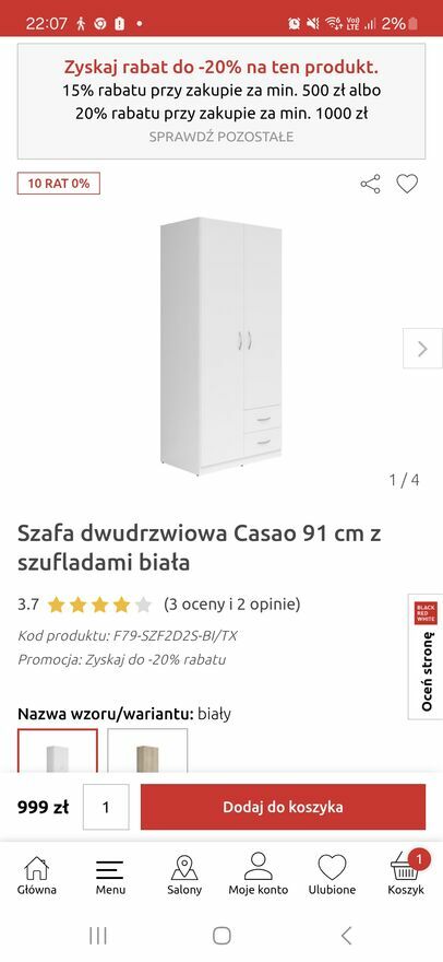 Szafa dwudrzwiowa Casao o wysokości 91 cm w kolorze białym. Nowoczesny i praktyczny mebel, który doskonale sprawdzi się w każdym wnętrzu. Zakupiona w marcu. W bardzo dobrym staniem. Jest już rozebrana. Zniesienie z parteru i przewóz w własnym zakresie.Sprawdź zainteresowanie tym ogłoszeniem