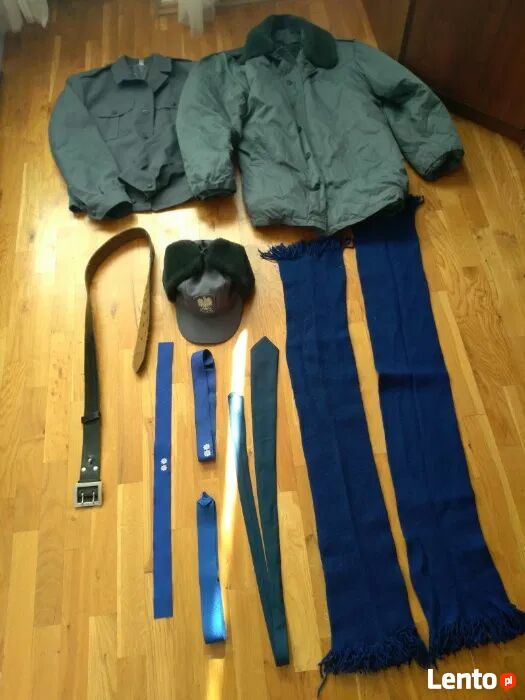 Sprzedam dla kolekcjonera umundurowanie (starego typu) w całości (takie jak na załączonych zdjęciach) lub z osobna. Cena do negocjacji.Olimpijka marynarka gabardynowa gabardyna 185/100/88.