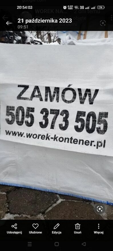 Worek na Gruz 1m3 Big Bag Wywóz Gruzu Tychy Bytom Zabrze itp