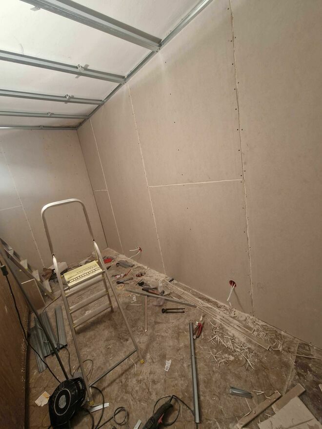 - Montaż płyt gipsowo-kartonowych na stelażu lub kleju