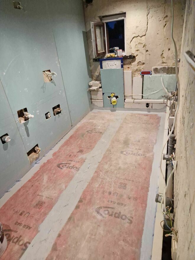 - Kafelkowanie podłóg i ścian (glazura, gres)
