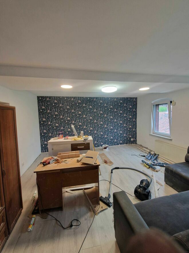 - Tapetowanie – również tapet wzorzystych + usuwanie starych tapet