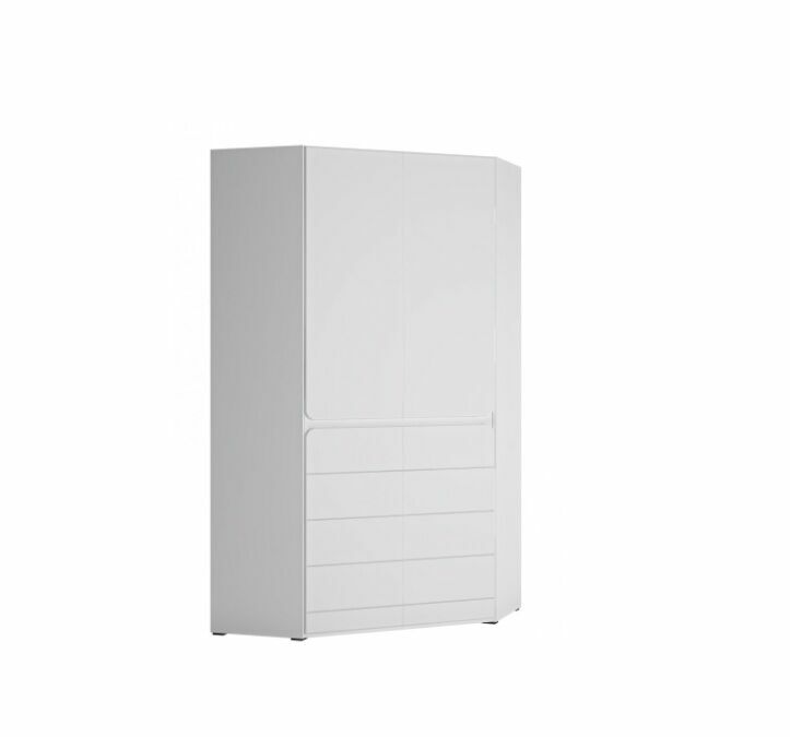 Szafa narożna idealnie wkomponuje się w każdym rogu, dzięki czemu można dobrze wykorzystać przestrzeń i nie przytłoczyć wnętrza pomieszczenia.Szafa wyposażona jest w system bezuchwytowy, wygodny i bezpieczny w użytkowaniu.