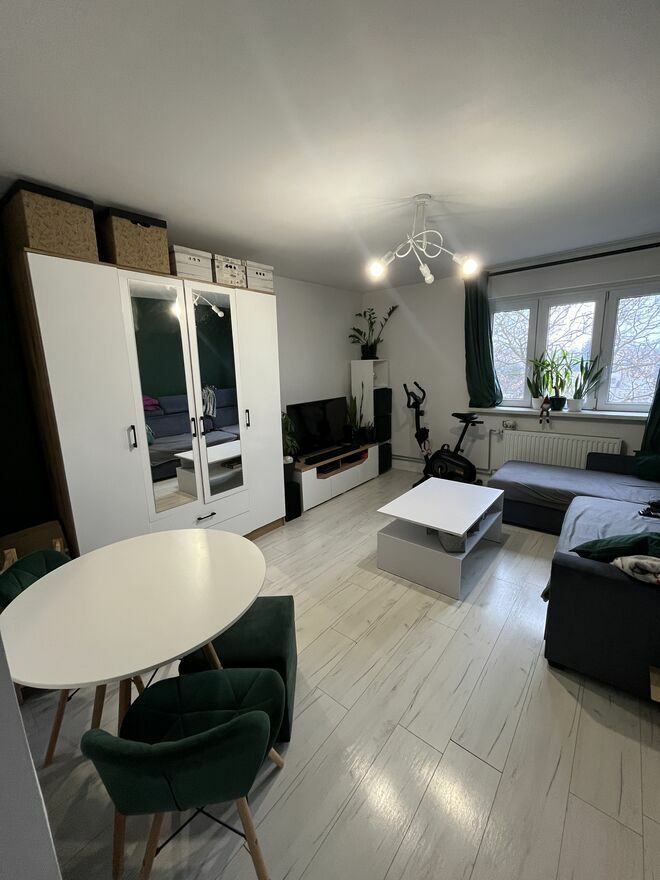 Mieszkanie z spółdzielni ( spółdzielcze ) po remoncie generalnym 5 lat temu. Wymieniona cała instalacja elektryczna, drzwi wejściowe, okna 2 szybowe, wykafelkowana łazienka z prysznicem i WC, kuchnia meble na wymiar, w całym mieszkaniu są panele poza łazienką. Podwieszane sufity z oświetleniem w jednym i w drugim pokoju oraz kuchni. Ogrzewanie miejskie. Ścisłe centrum (obok komisariatu policji i domu muzyki i tańca)Zamienimy na mieszkanie jakiekolwiek ale też spółdzielcze !! Nie komunalne (tak wypowiemy umowę w innej spółdzielni, bo wyjeżdżamy z Śląska)