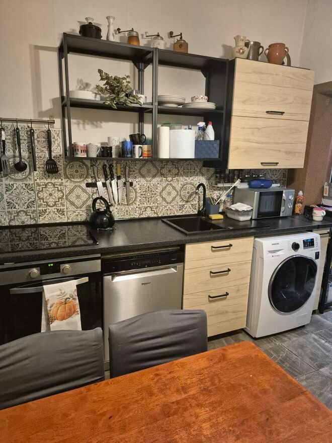 W mieszkaniu pozostaja cała umeblowana kuchnia,